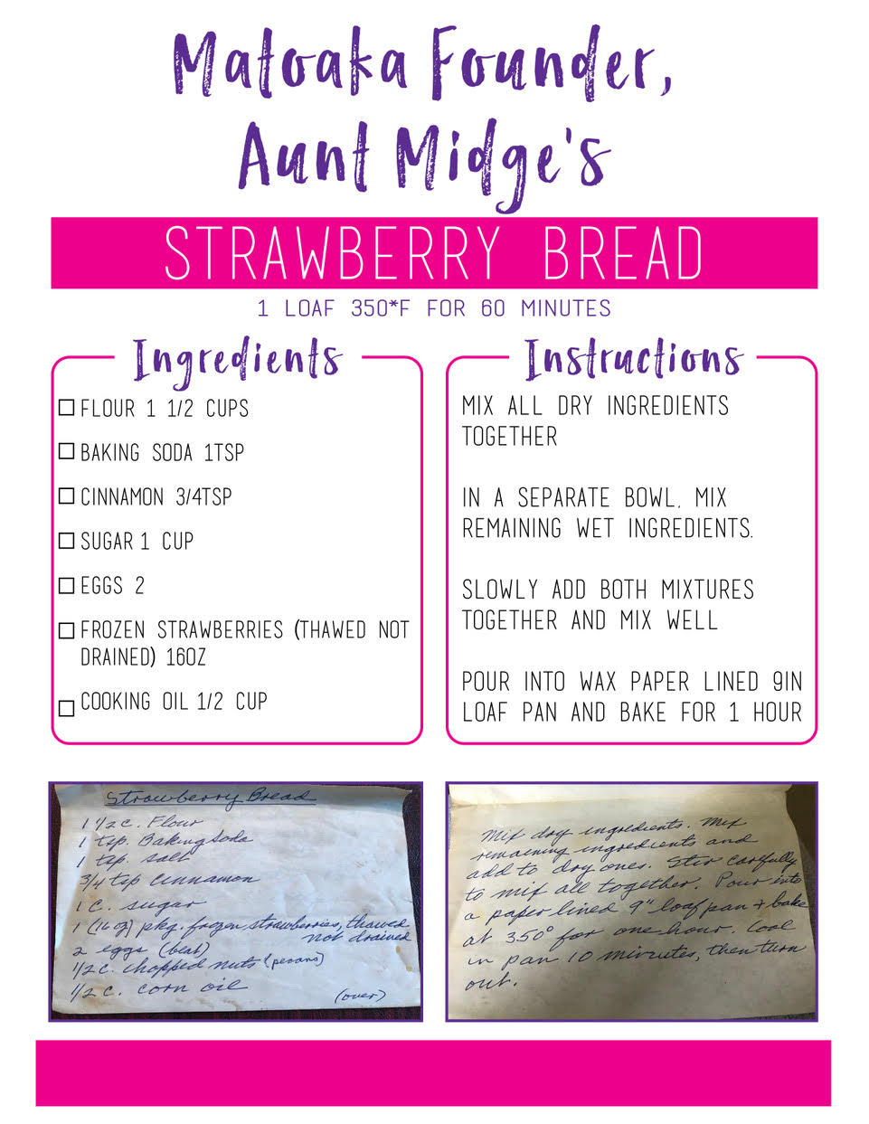 Matoaka Founder, Aunt Midge's Strawberry Bread
